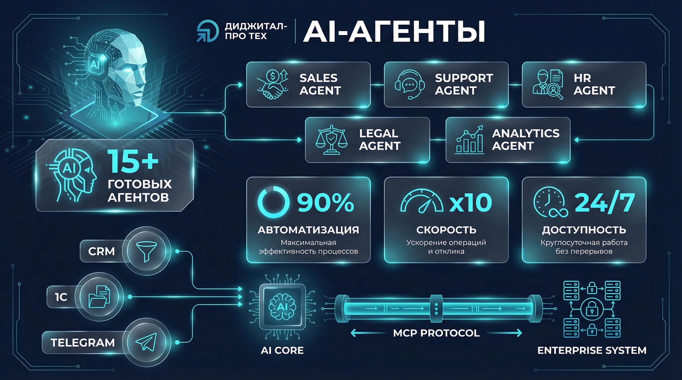 | AI-агент заменяет | 3-5 сотрудников |